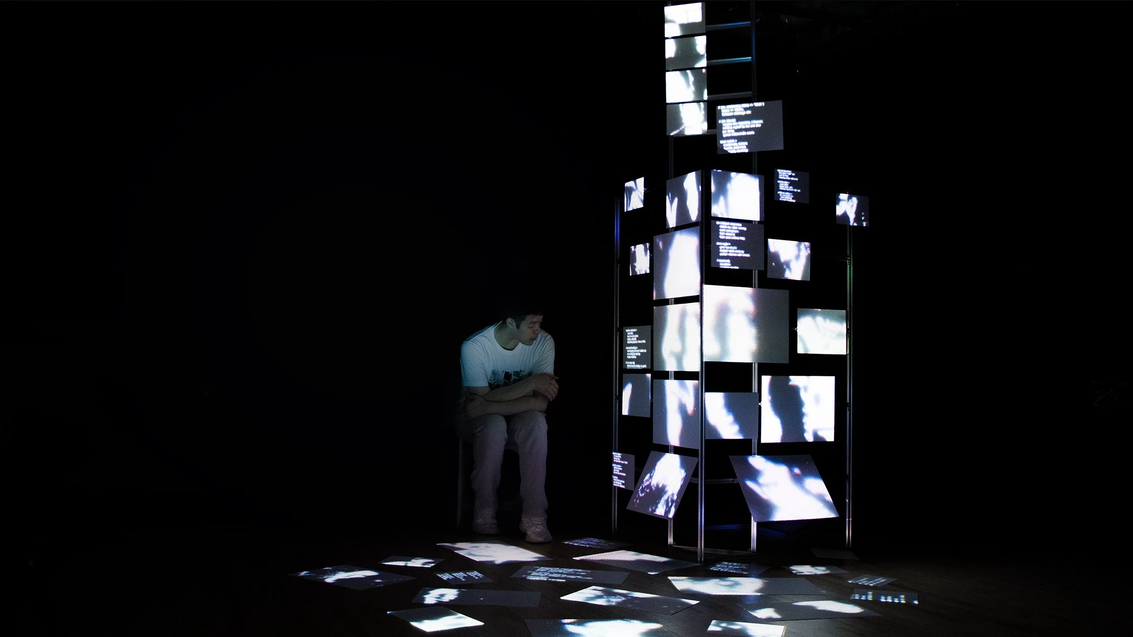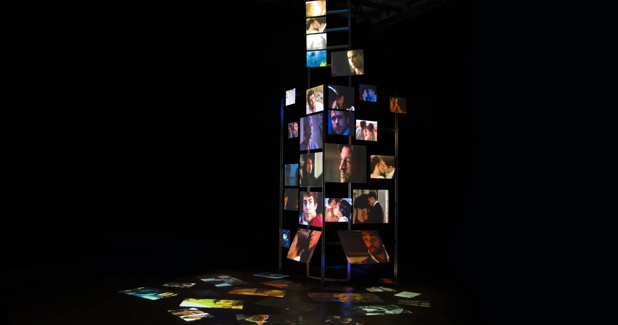 The Him Structure is an interactive installation about how romantic media shapes our desires, or specifically, my desire: quietly, deeply and often irreversibly. It’s about the emotional blueprint we inherit from every love story we’ve ever believed. Built from fake TV screens, aluminum extrusions, projection mapping and unhinged soundbites of love confessions, the structure externalizes longing into architecture. It materializes the fantasies we’ve absorbed since childhood, making them not just inside us, but built around us, physically, dramatically and on loop. This is not a re-examination, but an ode: a brave, emotionally bare confession of how deeply I’ve believed, and how much of me was built from those beliefs.